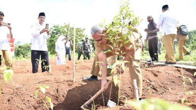 Penanaman Pohon dilakukan secara simbolis oleh Bupati Kuningan dan para pejabat Forkopimda dengan diditandai menanam Pohon Cengkeh.