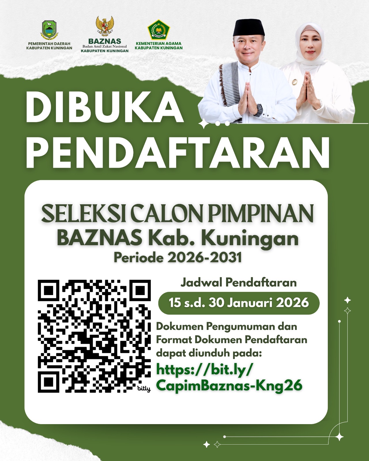 Bingkaiwarta, KUNINGAN – Pemerintah Kabupaten Kuningan telah membuka seleksi calon pimpinan Badan Amil Zakat Nasional (BAZNAS) Kabupaten Kuningan untuk periode 2026–2031. Kegiatan ini merupakan tindak lanjut dari Peraturan Menteri Agama RI Nomor 10 Tahun 2025 tentang pengangkatan dan pemberhentian pimpinan BAZNAS di tingkat daerah.