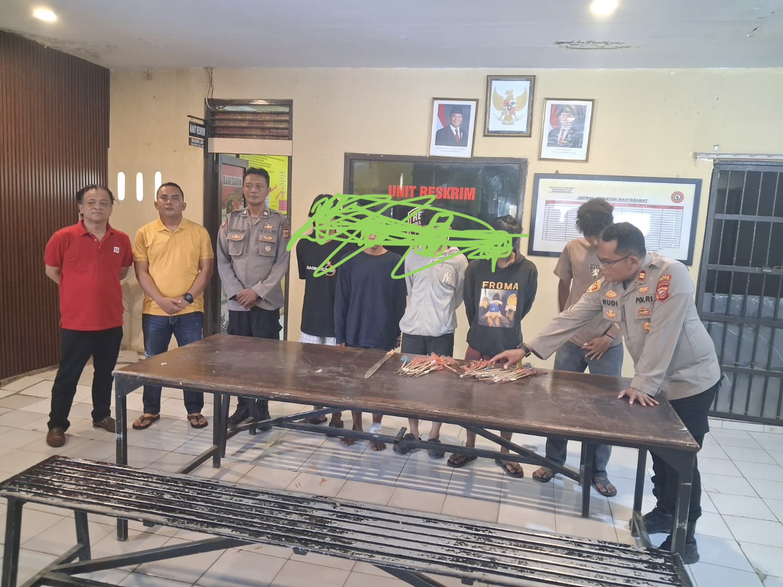 Polsek Kapetakan mengamankan lima remaja berinisial A-B (20), A-H (19), F (18), K-S (33), dan A-S (20), seluruhnya berasal dari wilayah Desa Purwawinangun dan Desa Muara. Mereka diperiksa untuk menentukan peran masing-masing dalam tawuran serta kaitannya dengan penggunaan senjata tajam dan anak panah.