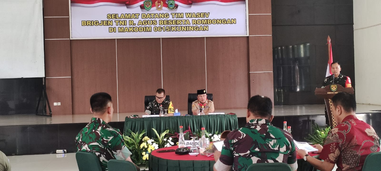 Kunjungan diawali di Aula Kodim 0615/Kuningan dan dihadiri jajaran Forkopimda, perwakilan OPD, serta unsur TNI-Polri. Turut hadir Bupati Kuningan Dr. H. Dian Rachmat Yanuar, Danrem 063/SGJ yang diwakili Kasrem Letkol Inf Tri Purwanto, dan Dandim 0615/Kuningan Letkol Arh Kiki Aji Wiryawan.