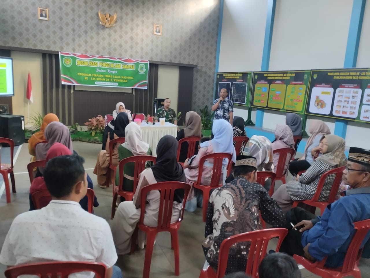 Bingkaiwarta, KADUGEDE – Dalam rangka program TNI Manunggal Membangun Desa (TMMD) Reguler ke-125 Tahun Anggaran 2025, telah dilaksanakan kegiatan non-fisik berupa penyuluhan pengolahan sampah kepada masyarakat serta penyerahan sarana prasarana tempat sampah, Kamis (31/07/2025) pukul 16.00–17.00 WIB, bertempat di Aula Balai Desa Sindangjawa, Kecamatan Kadugede, Kabupaten Kuningan.