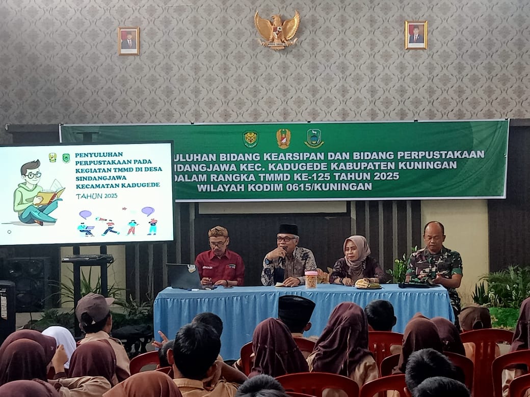 Bingkaiwarta, KADUGEDE – Sebagai bagian dari kegiatan non fisik TNI Manunggal Membangun Desa (TMMD) Skala Nasional ke-125 Tahun Anggaran 2025, Kodim 0615/Kuningan menggelar penyuluhan di bidang Kearsipan dan Perpustakaan. Kegiatan ini berlangsung di Balai Desa Sindangjawa, Kecamatan Kadugede, Kabupaten Kuningan, Kamis (07/08/2025).