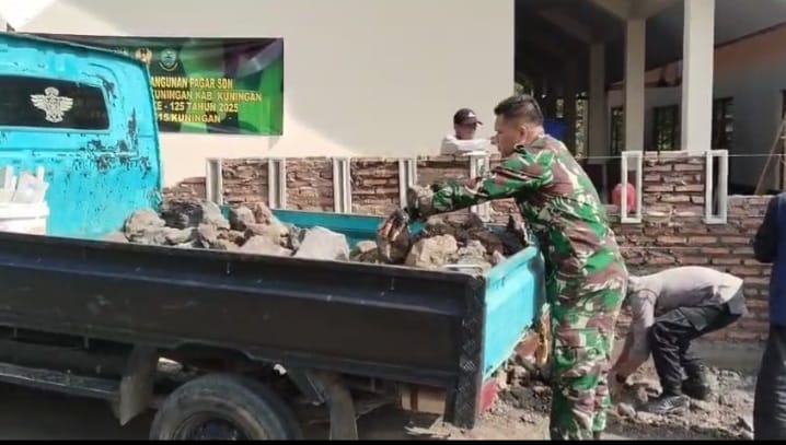 Bingkaiwarta, KADUGEDE – Program TNI Manunggal Membangun Desa (TMMD) skala Nasional ke-125 Tahun Anggaran 2025 terus menunjukkan progres positif di berbagai sasaran fisik. Salah satunya adalah pembangunan pagar di SDN Sindangjawa, Desa Sindangjawa, Kecamatan Kadugede, Kabupaten Kuningan.