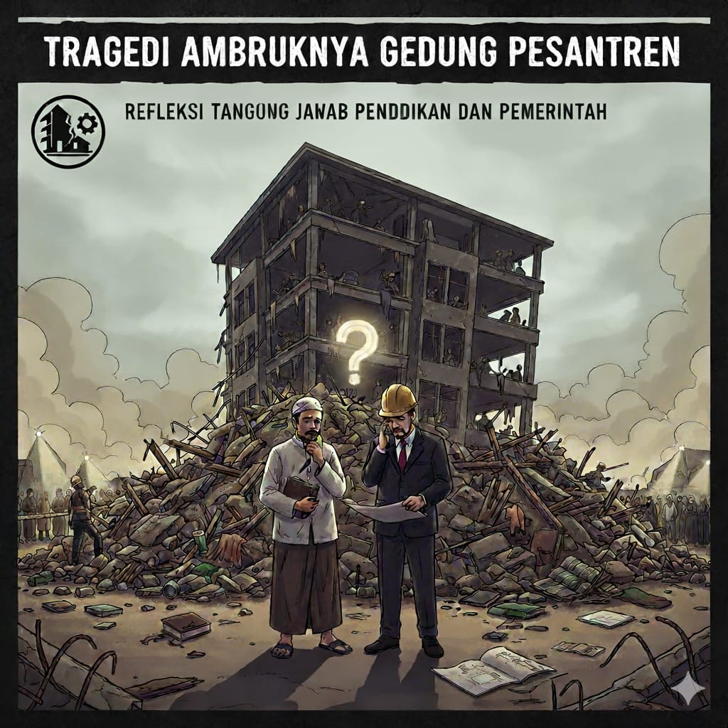 Peristiwa ambruknya gedung lantai empat Pondok Pesantren Al-Khozyni di Buduran, Sidoarjo, telah mengundang keprihatinan mendalam dari berbagai kalangan. Hingga saat ini, jumlah korban terus bertambah, dengan 67 santri meninggal dan 104 lainnya mengalami luka-luka (www.detik.com, 8/10/2025).