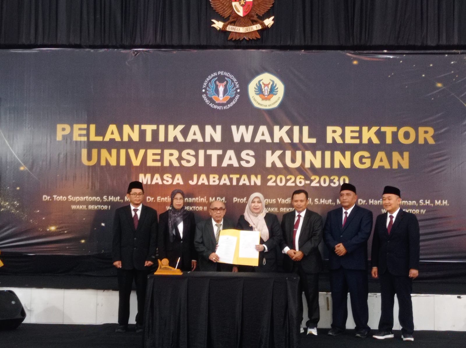 Rektor Anna juga mengucapkan selamat kepada para Wakil Rektor baru dan mengajak seluruh sivitas akademika untuk bekerja dengan dedikasi dan integritas. “Mari kita buktikan bahwa Uniku mampu menjadi universitas yang membanggakan, tidak hanya bagi Kabupaten Kuningan, tetapi juga untuk Indonesia,” tambahnya.