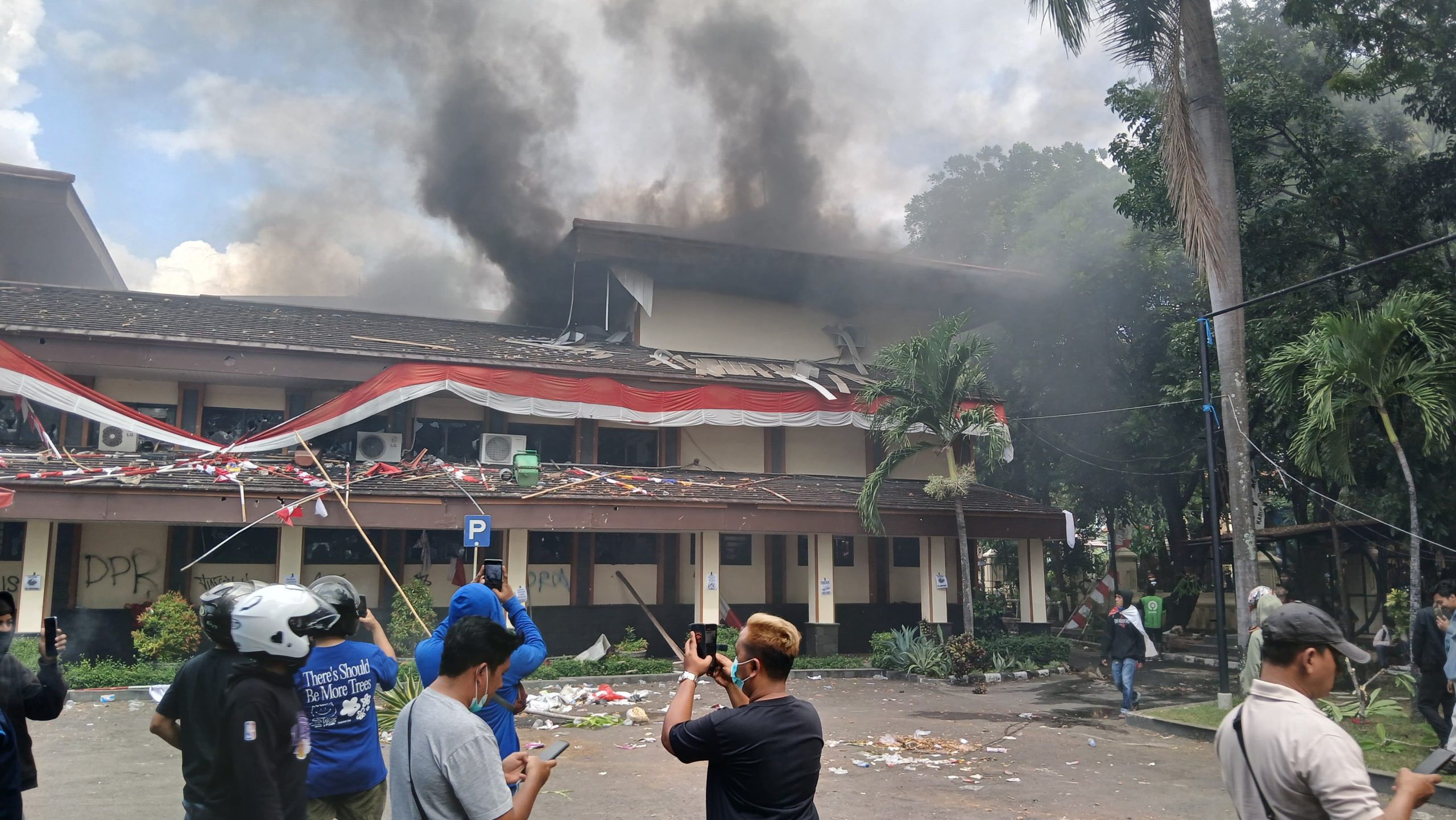 Massa justru semakin beringas dan melakukan pembakaran di salah satu ruangan sisi kanan gedung DPRD. Api sempat membesar dan memunculkan asap hitam pekat, namun berhasil dipadamkan oleh petugas Damkar sehingga tidak merembet ke ruangan lain.