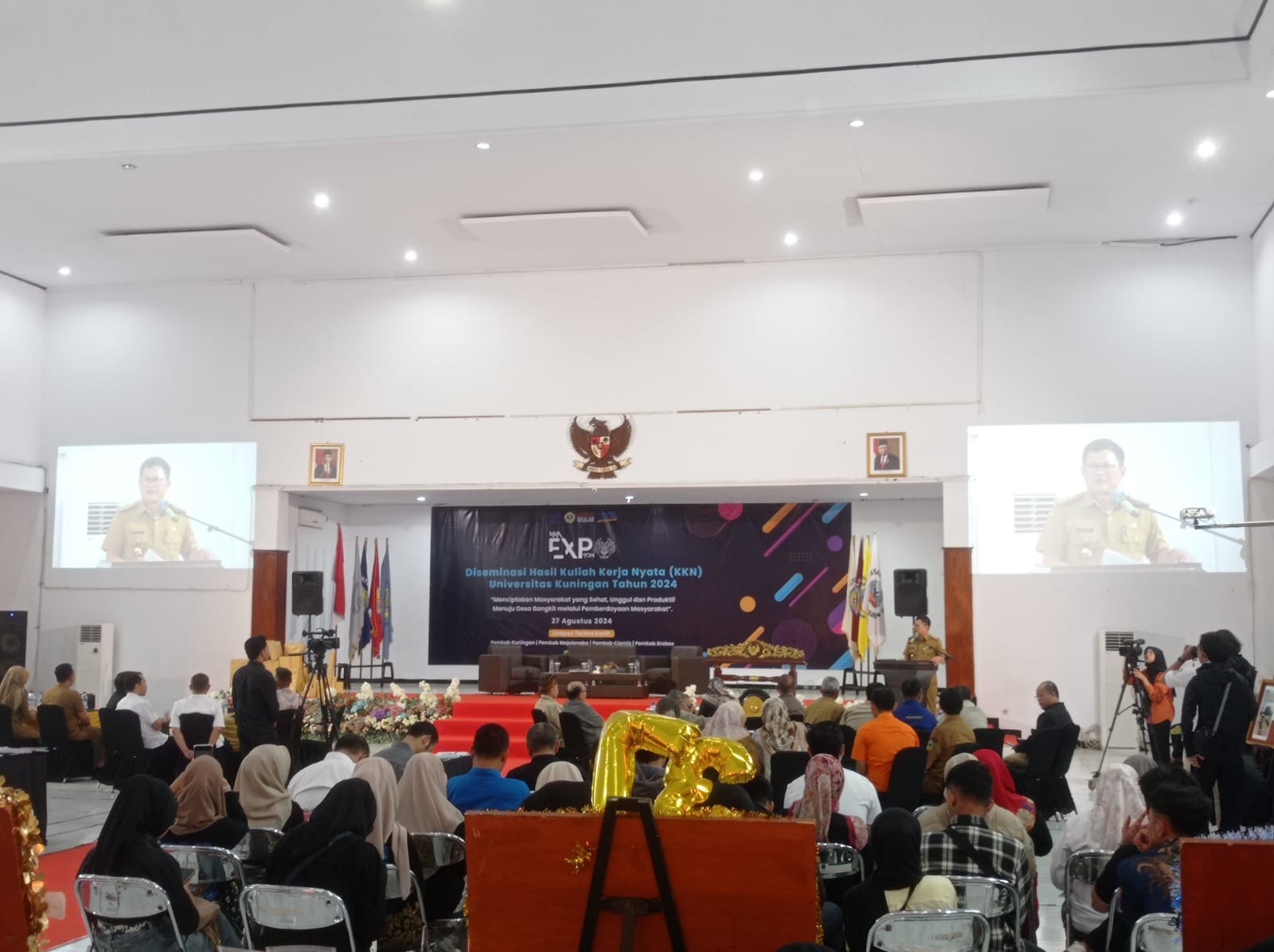 Nampak hadir, Pj. Bupati Kuningan yang dalam kesempatan ini diwakili oleh Pj. Sekda Kuningan, Dr. Asep Taopik Rohman, M.Si., M.Pd., perwakilan BAPPEDA, Disdikbud, Disporapar, Disdukcapil, BNN, DPMD, Dinas Sosial, Dinas Kesehatan, Diskominfo, BPBD, Diskopdagerin, Patriot Desa, jajaran pengurus Yayasan Sang Adipati Kuningan (YPSAK), Wakil Rektor I Dr. Anna Fitri Hindriana, M.Si., beserta jajaran Pejabat Struktural lainnya di Lingkungan Uniku, Dosen Pembimbing Lapangan (DPL), peserta KKN dan tamu undangan lainnya.