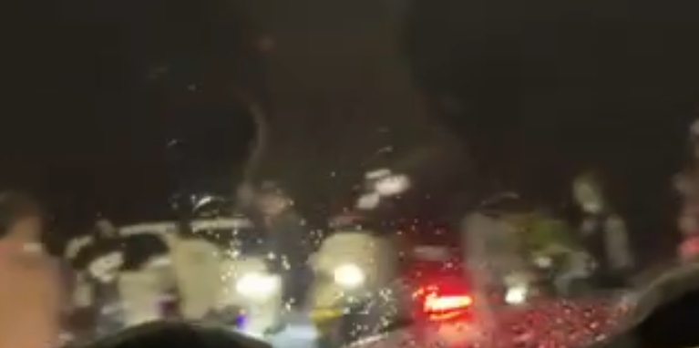 Tampak pula sejumlah remaja berlarian di tengah jalan, sementara sebagian lainnya memacu sepeda motor dengan kecepatan tinggi. Kondisi gelap dan cuaca buruk makin memperkeruh suasana yang mencekam, mengancam keselamatan pengguna jalan dan warga sekitar.