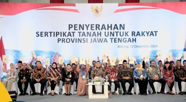 Dalam kegiatan ini, Wamen Ossy didampingi Plt. Kepala Kantor Wilayah BPN Provinsi Jawa Tengah, Sri Yanti Achmad dan Pj. Bupati Batang, Lani Dwi Rejeki untuk menyerahkan sertipikat tanah kepada 10 perwakilan penerima sertipikat. Kegiatan ini juga dihadiri oleh Bupati Batang terpilih, M. Faiz Kurniawan dan juga jajaran Forkopimda Provinsi Jawa Tengah beserta jajaran. (Abel/hms)