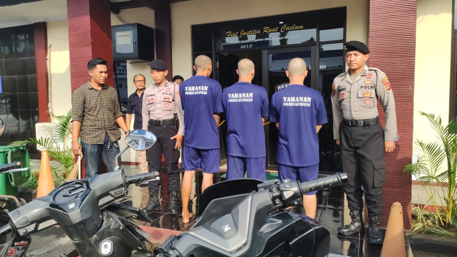 Bingkaiwarta, KUNINGAN – Tiga pelaku pencurian kendaraan bermotor (curanmor) di Kos Siaga Indah, Kecamatan Kuningan, telah berhasil diamankan oleh Polres Kuningan pada Kamis (11/12/2025) sore. Kejahatan yang terjadi pada 5 Desember 2025 lalu memanfaatkan kepercayaan dalam pertemanan sebagai modus utama, dengan pelaku menggandakan kunci motor korban sebelum melakukan aksi.